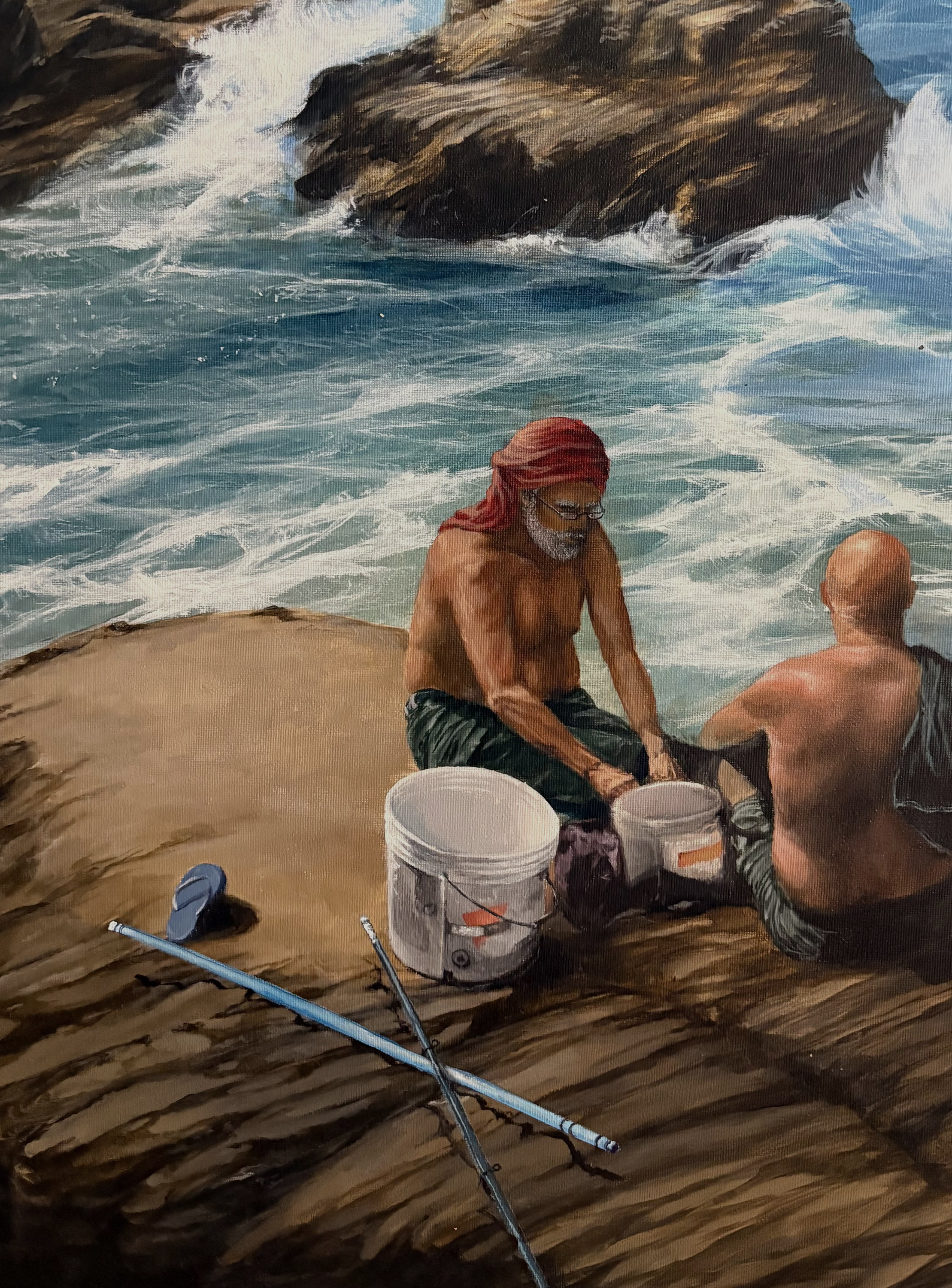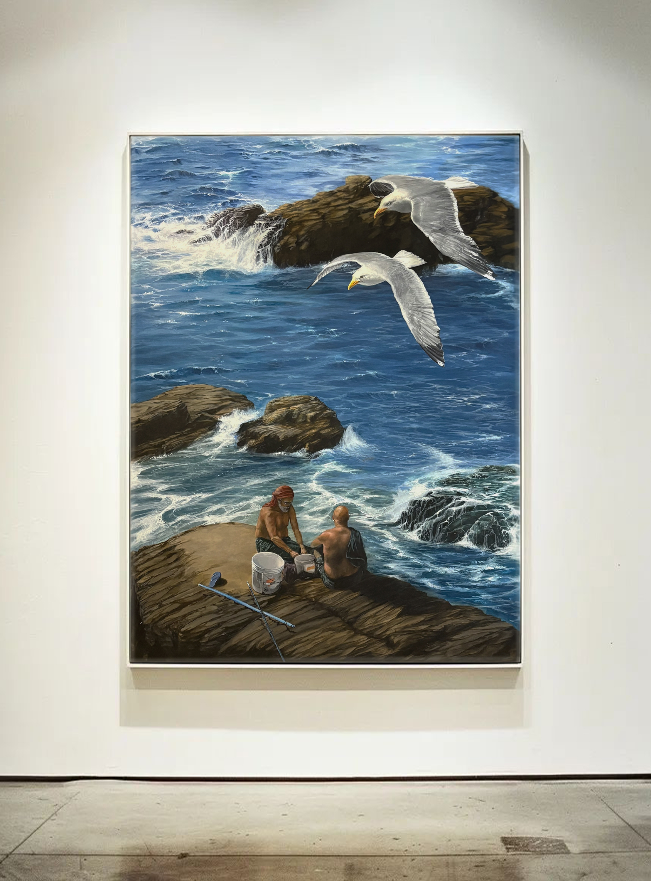 Here, time moves differently. The waves whisper to stone, the gulls call across the spray, and two solitary figures find their place in the vast conversation between sea and shore.